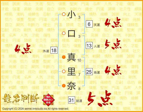 小口真里奈さんの総運は31画の5点!