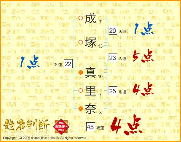 成塚真里奈さんの総運は45画の4点!