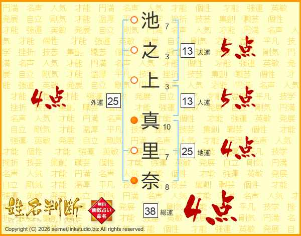 池之上真里奈さんの総運は38画の4点!