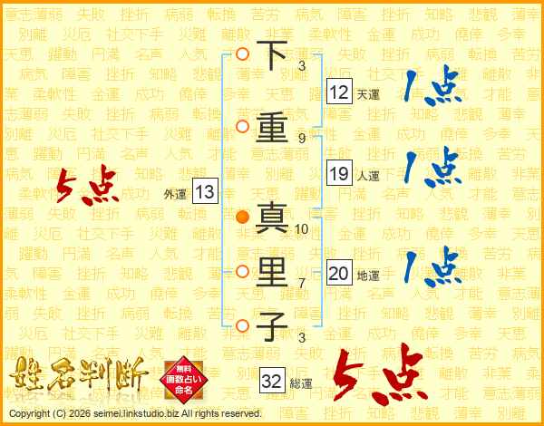 下重真里子さんの総運は32画の5点!