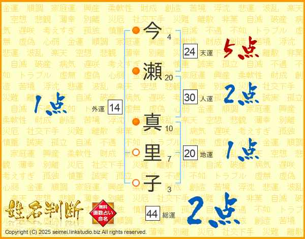 今瀬真里子さんの総運は44画の2点!