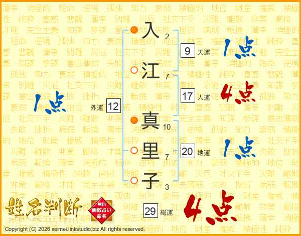 入江真里子さんの総運は29画の4点!