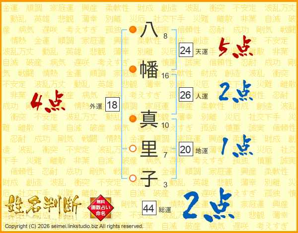 八幡真里子さんの総運は44画の2点!