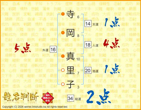 寺岡真里子さんの総運は34画の2点!