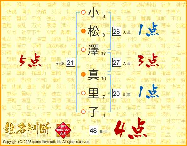 小松澤真里子さんの総運は48画の4点!