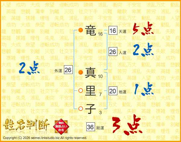竜真里子さんの外運は26画の2点!