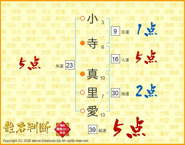 小寺真里愛さんの総運は39画の5点!