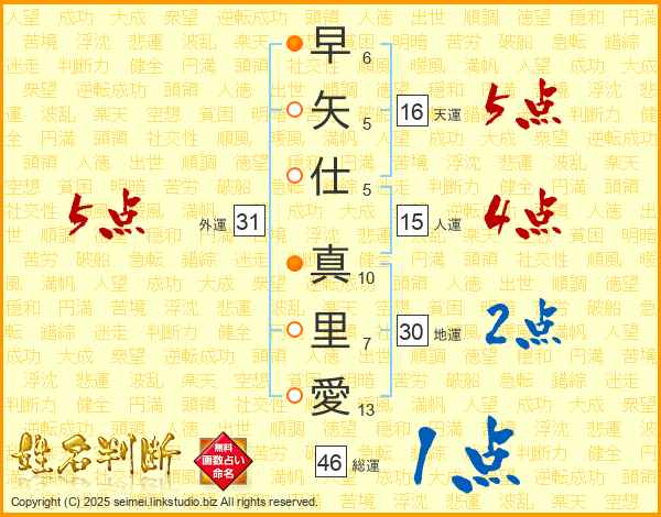 早矢仕真里愛さんの総運は46画の1点!