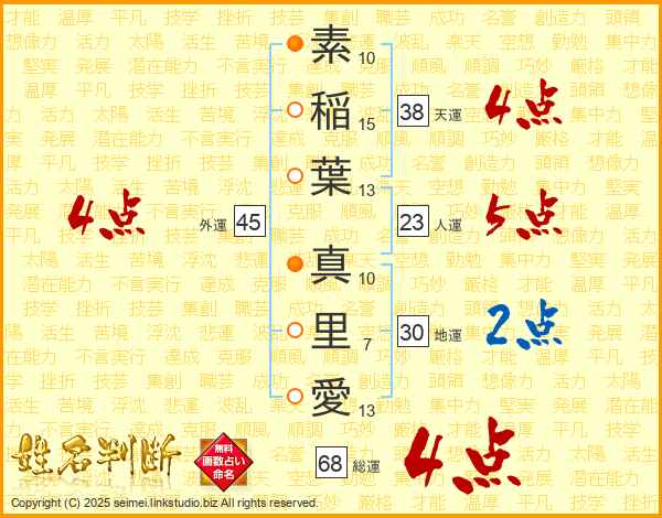 素稲葉真里愛さんの総運は68画の4点!