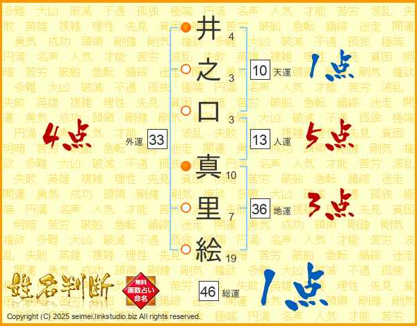 井之口真里絵さんの外運は33画の4点!