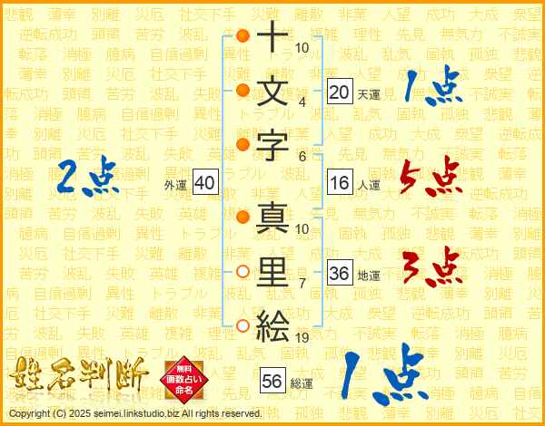 十文字真里絵さんの天運は20画の1点!