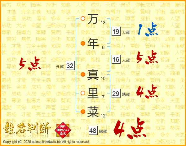 万年真里菜さんの外運は32画の5点!
