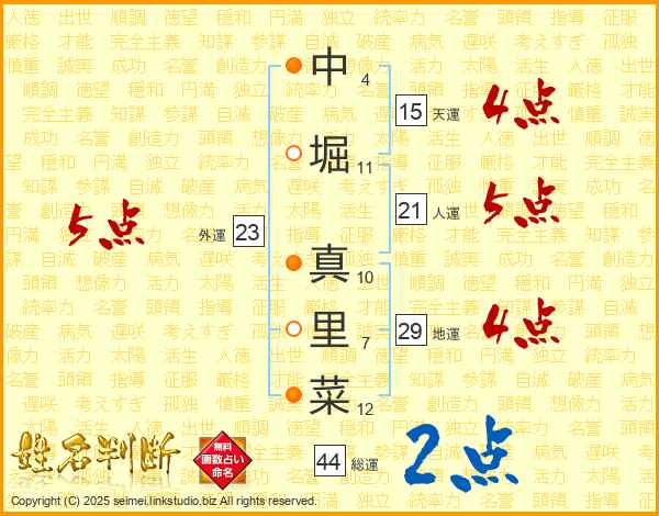 中堀真里菜さんの総運は44画の2点!