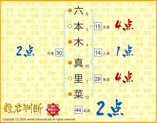 六(6画)本(5画)木(4画) 真(10画)里(7画)菜(12画)