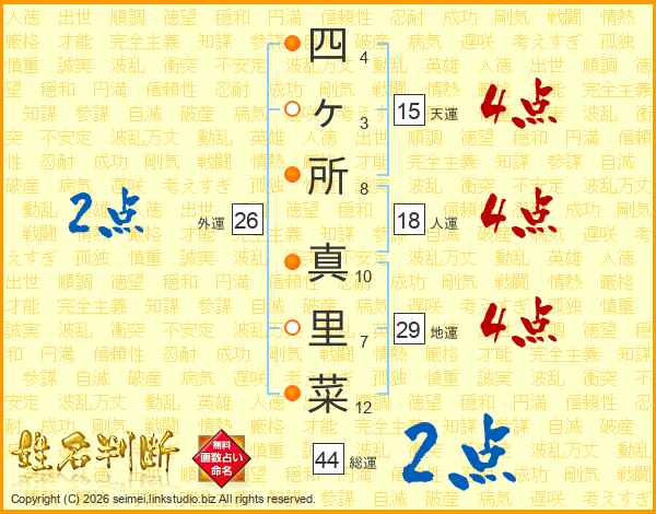 四ヶ所真里菜さんの総運は44画の2点!