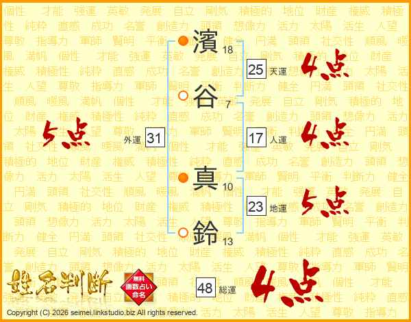 濱谷真鈴さんの天運は25画の4点!