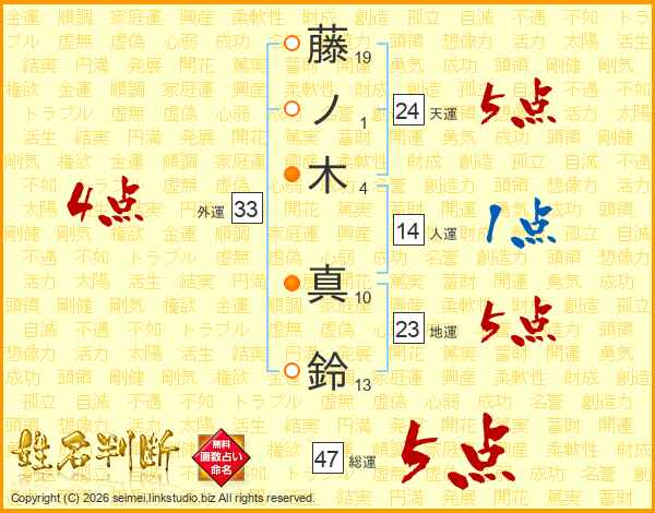 藤ノ木真鈴さんの外運は33画の4点!