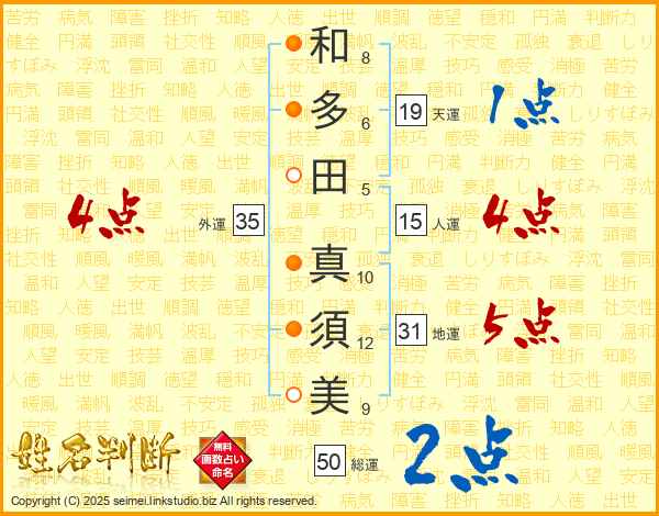 和(8画)多(6画)田(5画) 真(10画)須(12画)美(9画)