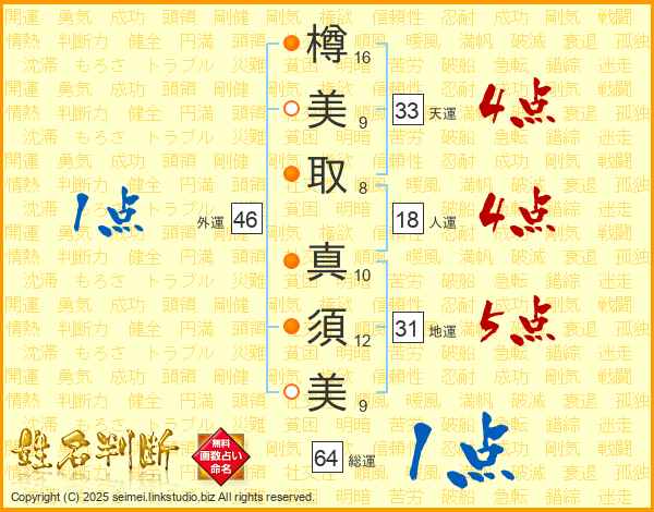 樽(16画)美(9画)取(8画) 真(10画)須(12画)美(9画)