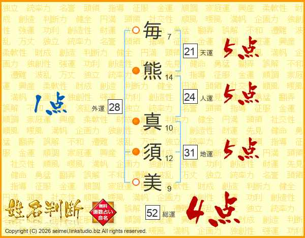 毎熊真須美さんの総運は52画の4点!
