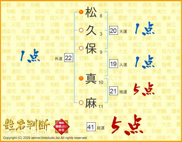 松(8画)久(3画)保(9画) 真(10画)麻(11画)