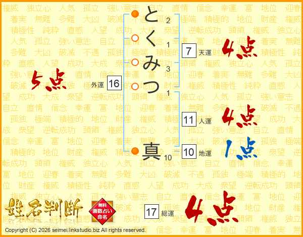 とくみつ真さんの総運は17画の4点!