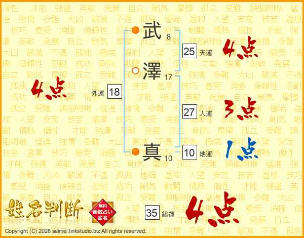 武澤真さんの総運は35画の4点!