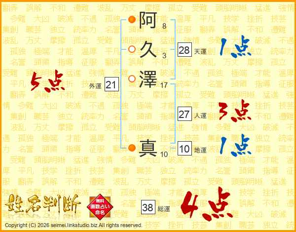阿久澤真さんの総運は38画の4点!