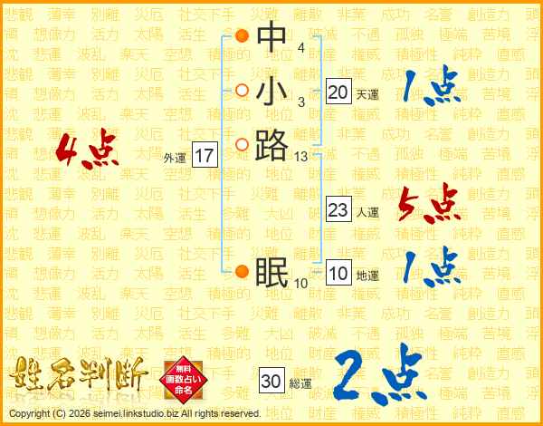 中小路眠さんの人運は23画の5点!