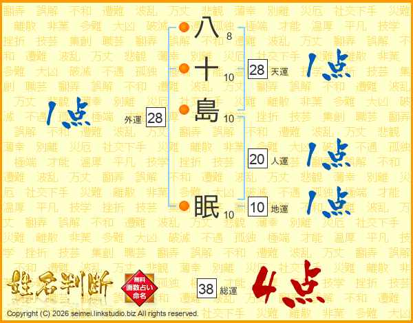 八十島眠さんの総運は38画の4点!