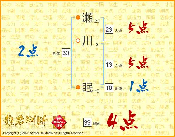 瀬川眠さんの総運は33画の4点!