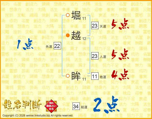 堀越眸さんの総運は34画の2点!