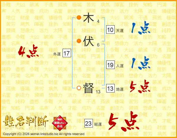 木伏督さんの総運は23画の5点!