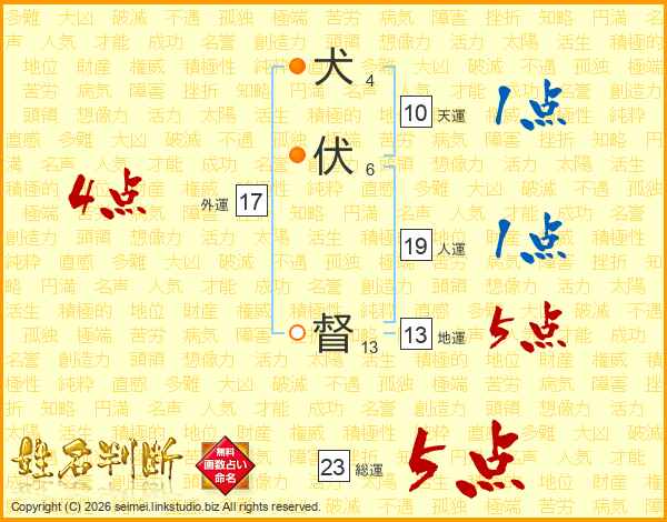 犬伏督さんの総運は23画の5点!