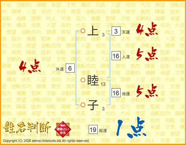 上睦子さんの総運は19画の1点!