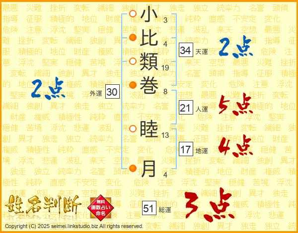 小比類巻睦月さんの総運は51画の3点!
