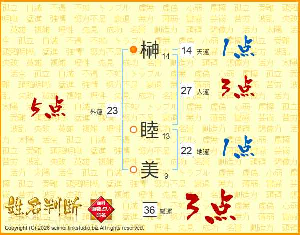 榊睦美さんの人運は27画の3点!