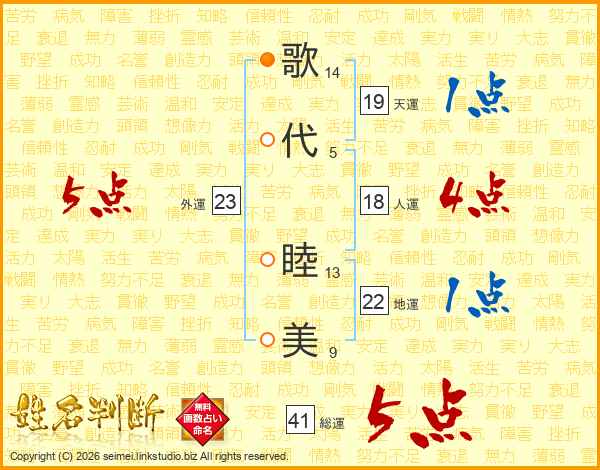 歌(14画)代(5画) 睦(13画)美(9画)