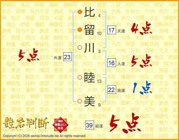 比留川睦美さんの総運は39画の5点!