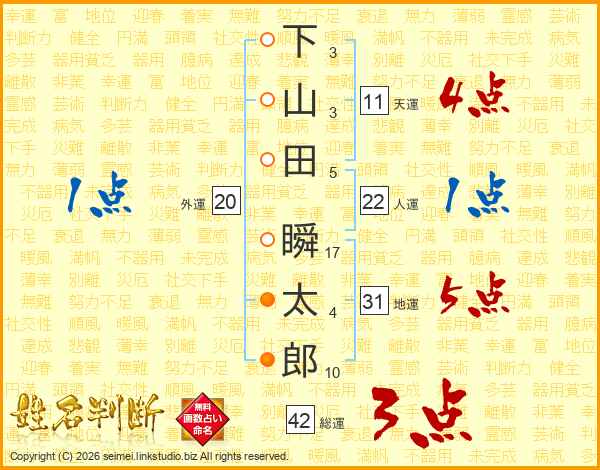 下山田瞬太郎さんの天運は11画の4点!