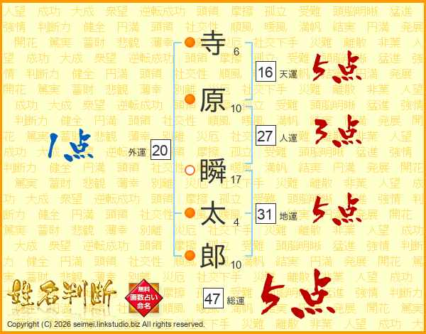 寺原瞬太郎さんの総運は47画の5点!