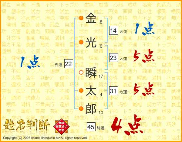 金光瞬太郎さんの総運は45画の4点!
