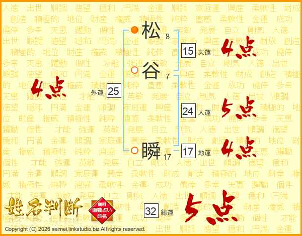 松谷瞬さんの総運は32画の5点!