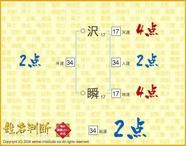 沢瞬さんの総運は34画の2点!