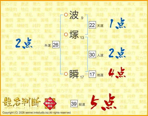波塚瞬さんの総運は39画の5点!