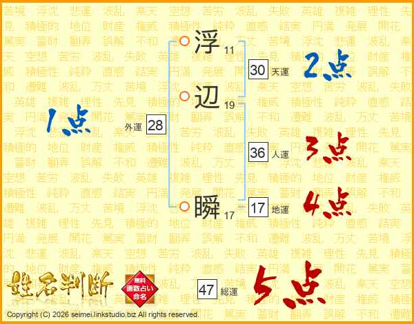 浮辺瞬さんの総運は47画の5点!