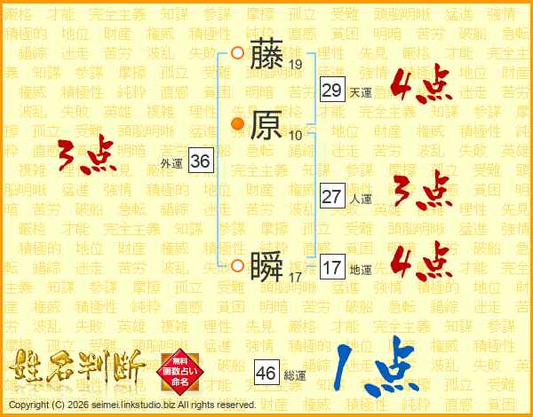 藤原瞬さんの総運は46画の1点!