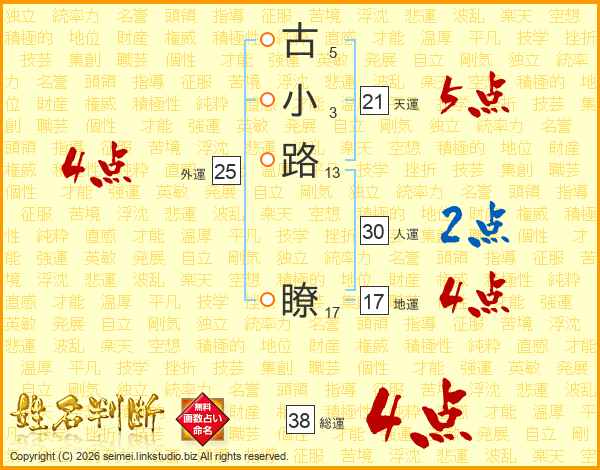 古小路瞭さんの総運は38画の4点!