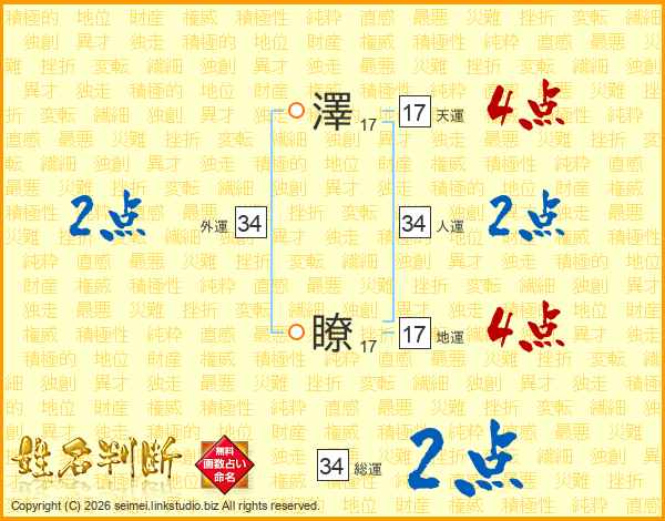 澤瞭さんの総運は34画の2点!