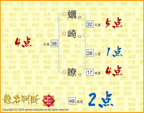 蠣崎瞭さんの地運は17画の4点
